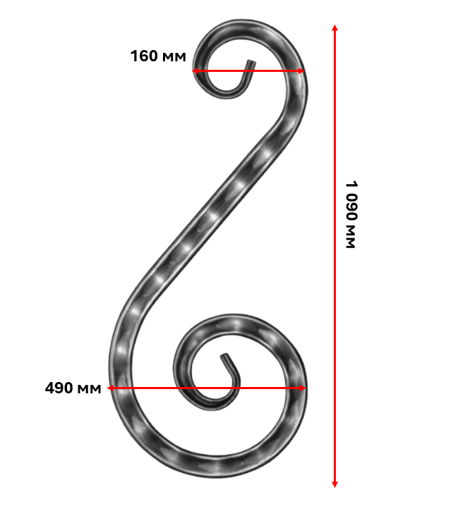 кованый элемент волюта с декором 1090х160х490 – купить за 330 ₽ | Металлобаза СТАЛЬ 42