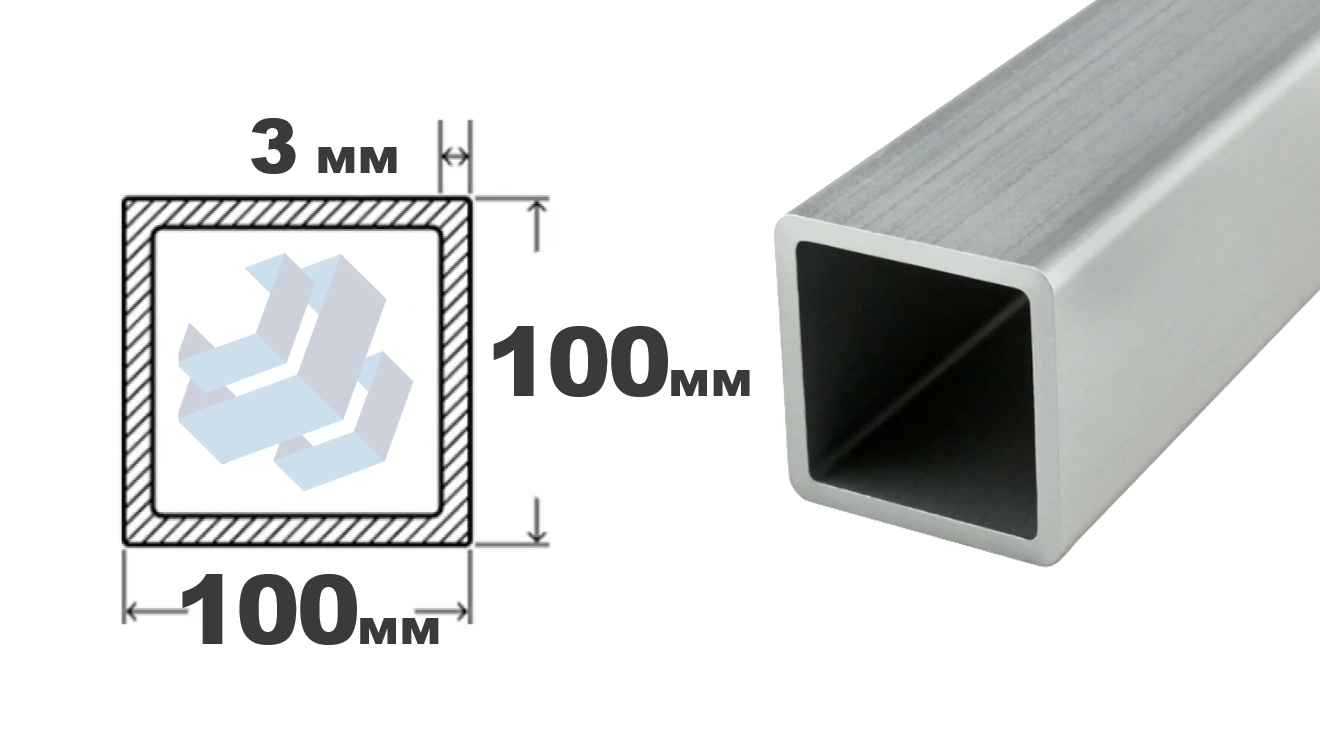 - Размеры: 100×100 мм (внешний размер), толщина стенки — 3 мм.