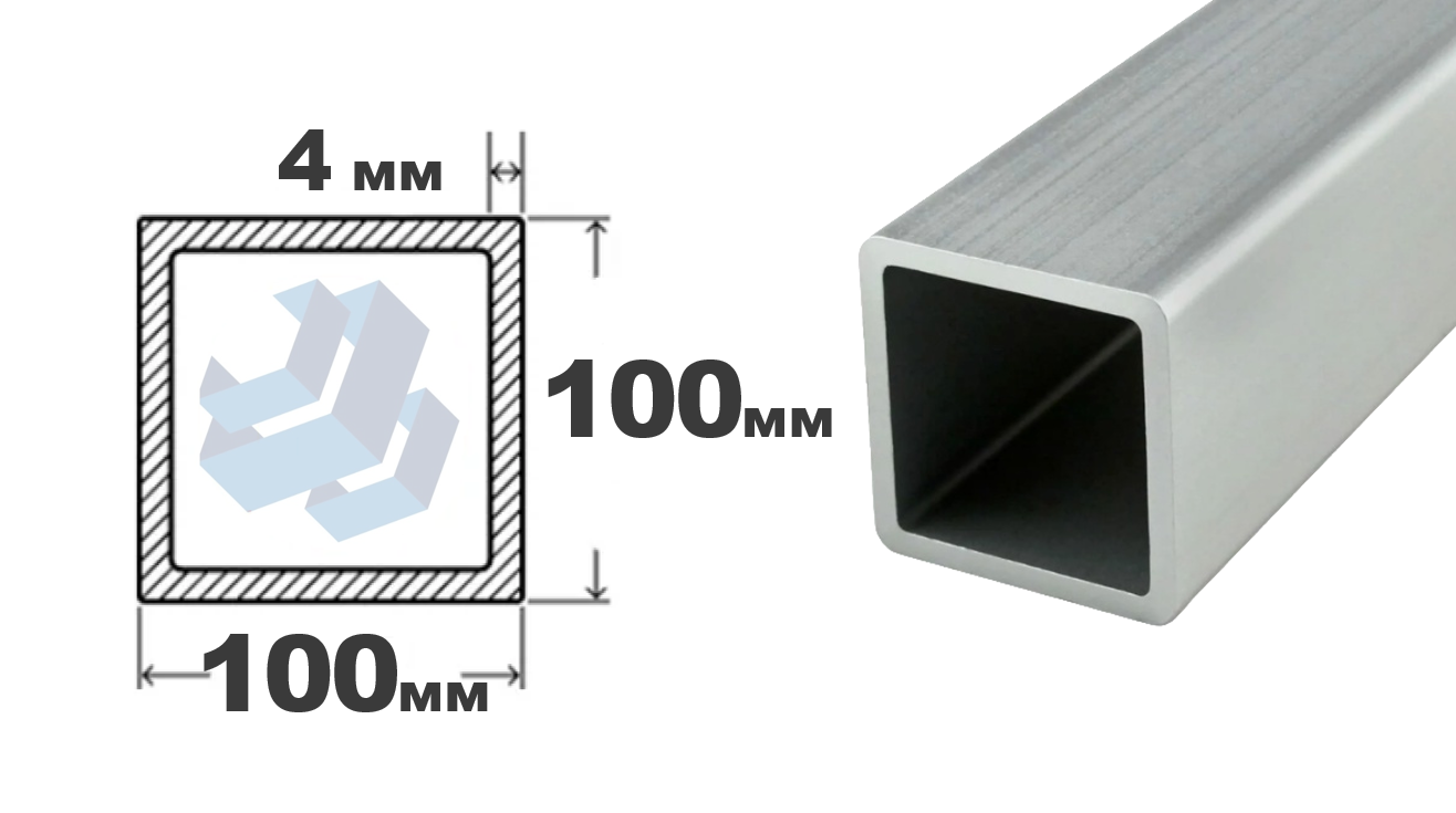 Электросварная квадратная труба 100×4 мм, длина 6000 мм, ГОСТ 13663-86