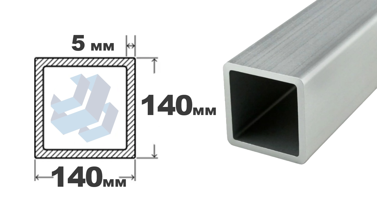 Электросварная квадратная труба 140×5 мм, длина 6000 мм, ГОСТ 30245-2003