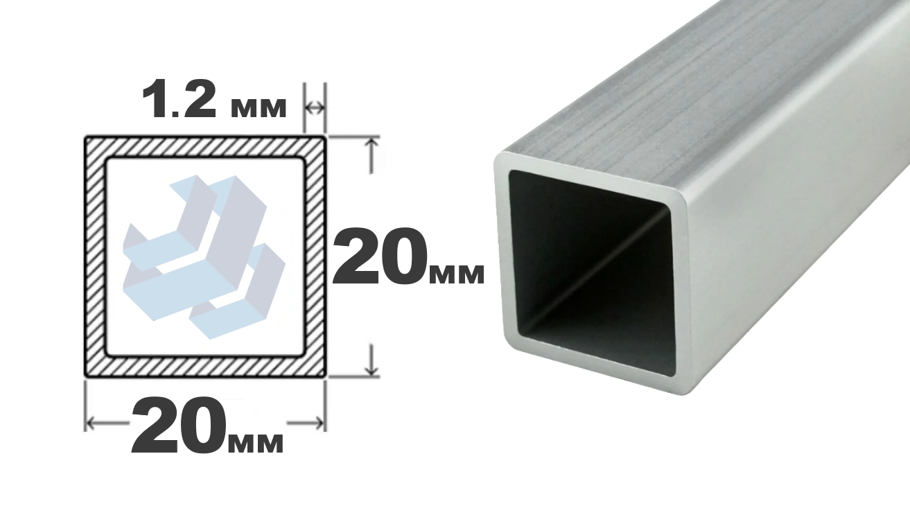 Электросварная квадратная труба 20×1,2 мм, длина 6000 мм, ГОСТ 13663-86