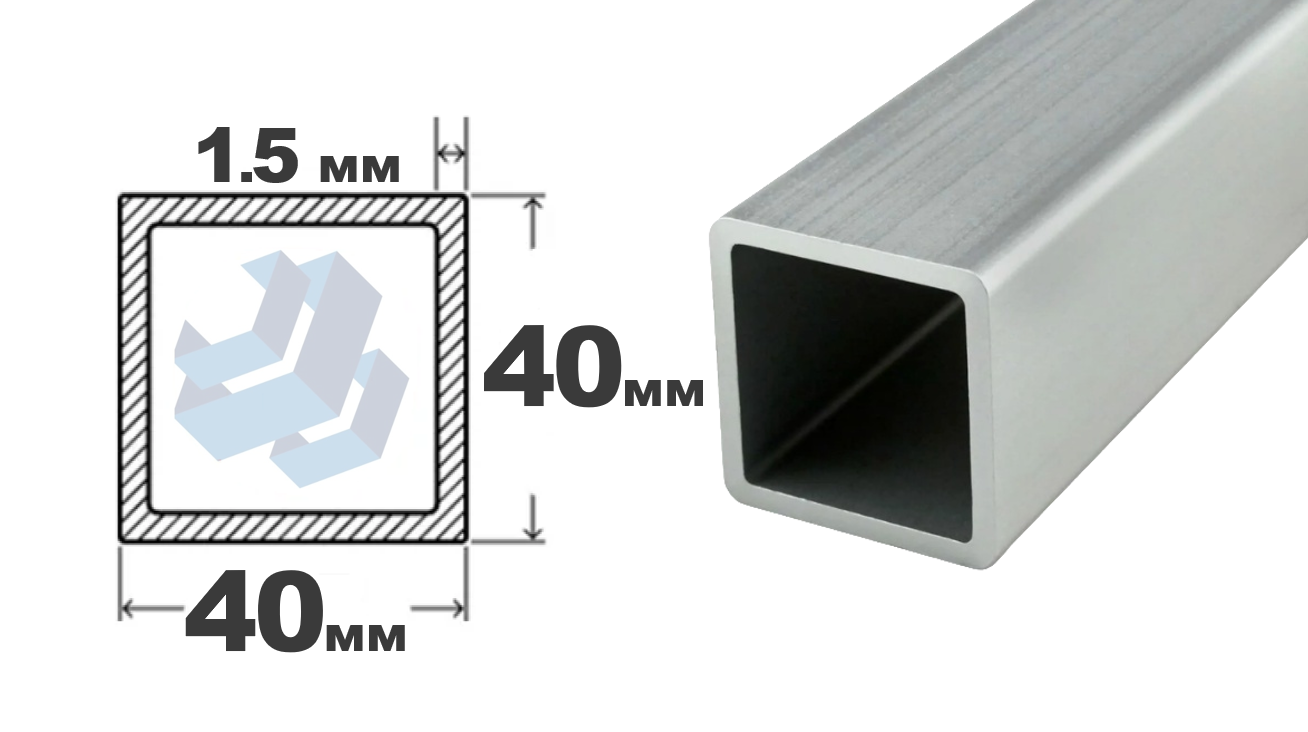 Электросварная квадратная труба 40×1,5 мм, длина 6000 мм, ГОСТ 13663-86