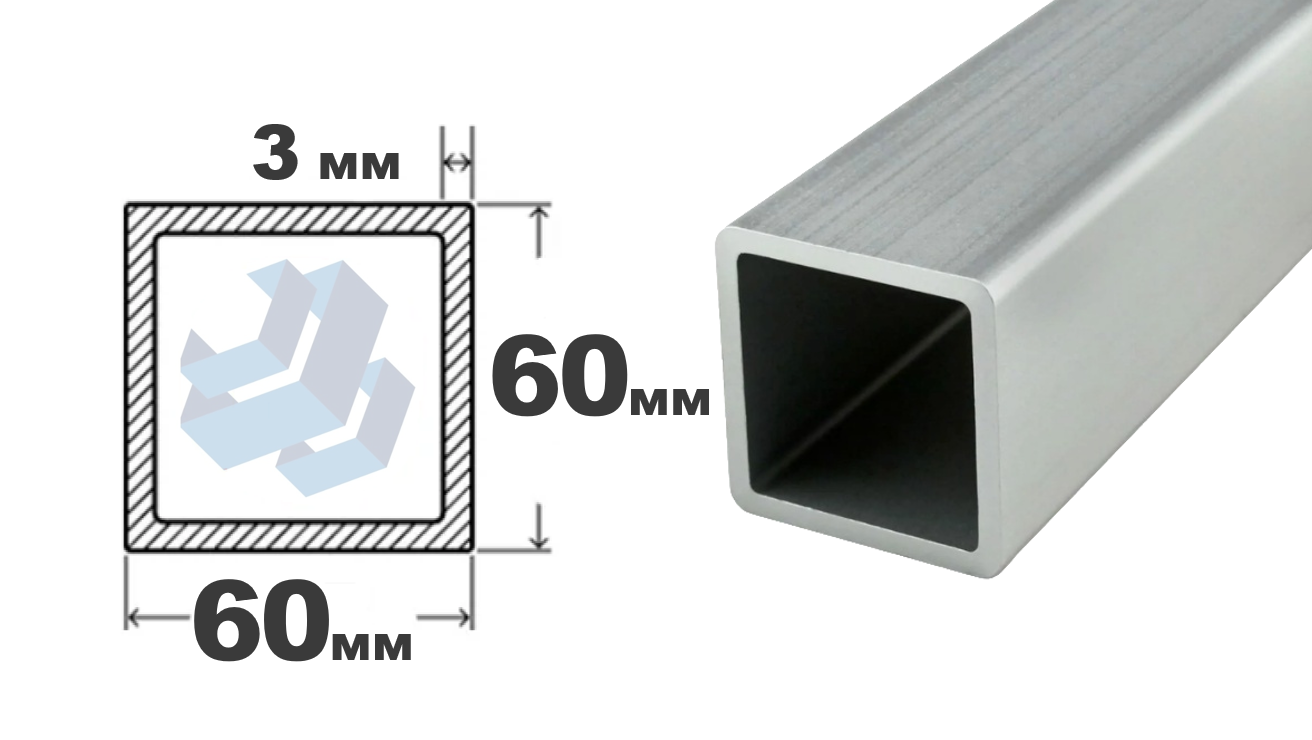 Электросварная квадратная труба 60×3,0 мм, длина 6000 мм, ГОСТ 13663-86