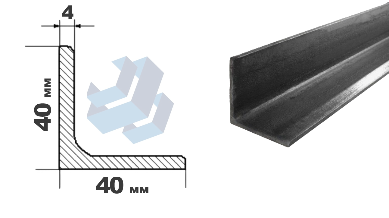 Уголок равнополочный горячекатаный ГОСТ 8509-93 Ст3пс/сп5 40×4 мм, длина 6000 мм