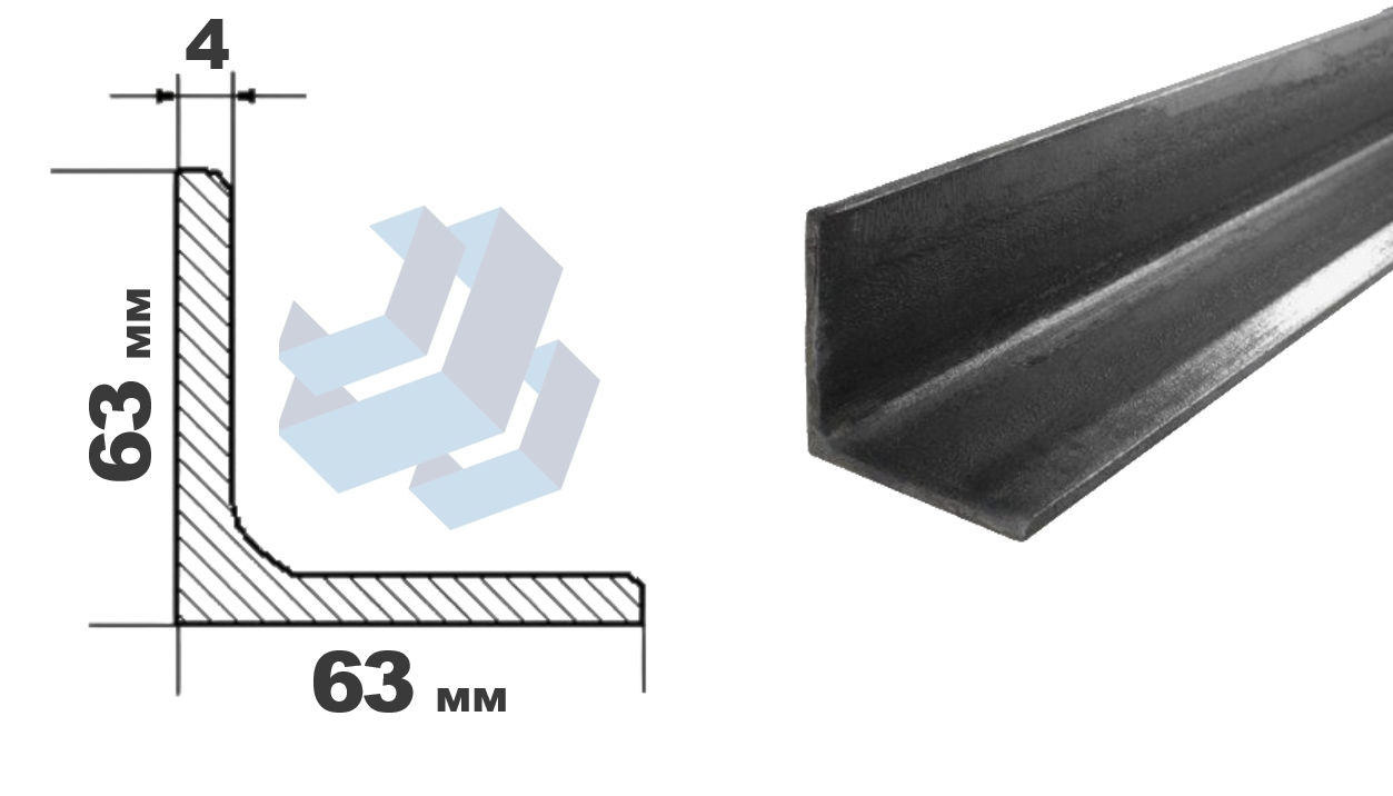 Уголок равнополочный ГОСТ 8509-93, Ст3пс/сп, 63×4, длина 6000 мм