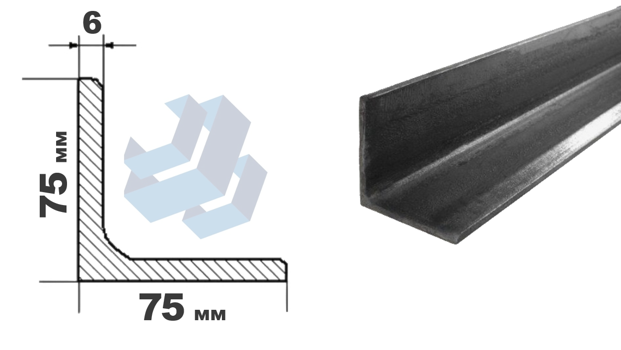 Уголок равнополочный ГОСТ 8509-93 Ст3пс/сп5, 75×6, длина 6000 мм